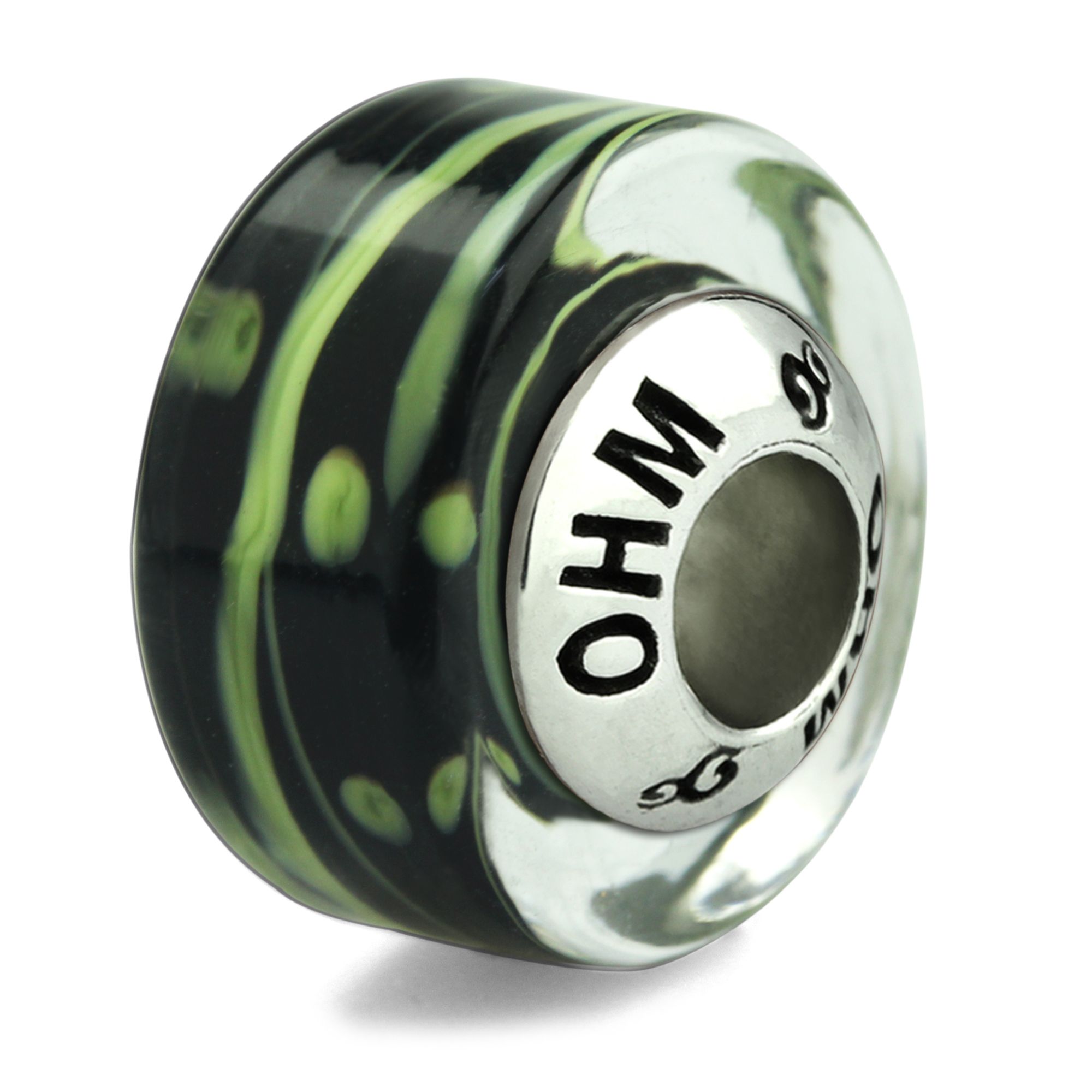 #OHMInfectedDream บีดแก้วสีพื้นดำ พาดพันตัดกันด้วยลายเส้นสีเขียวอ่อน และลายจุดสีเดียวกัน